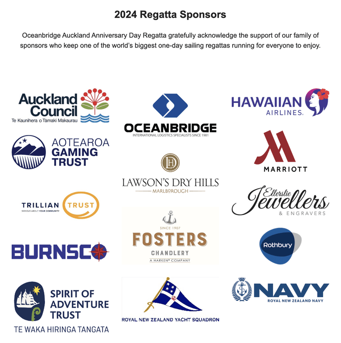 The Oceanbridge Auckland Anniversary Day Regatta is also made possible with the support of Auckland Council, Lawson’s Dry Hills Wines, Rothbury Insurance Brokers, Ellerslie Jewellers, Aotearoa Gaming Trust, Trillian Trust, the Royal New Zealand Yacht Squadron and the Royal New Zealand Navy.